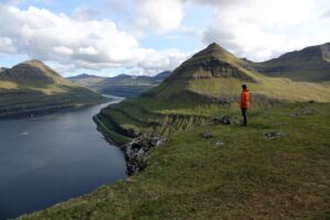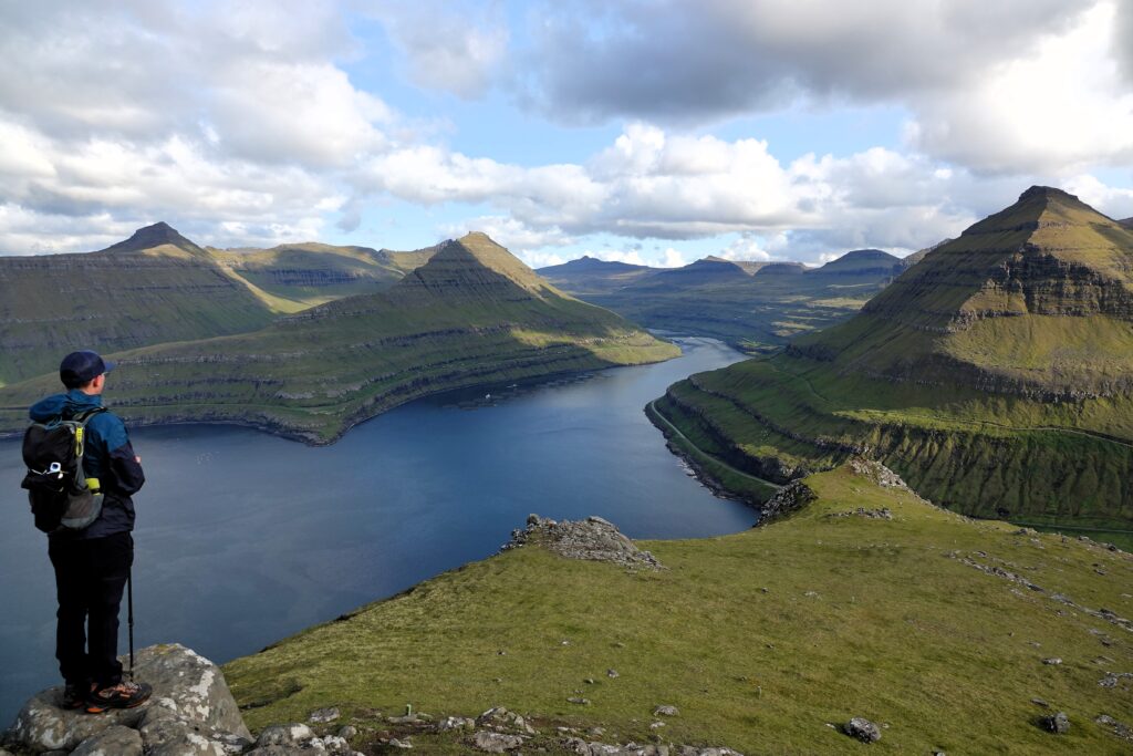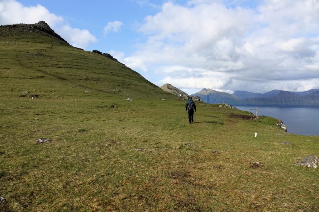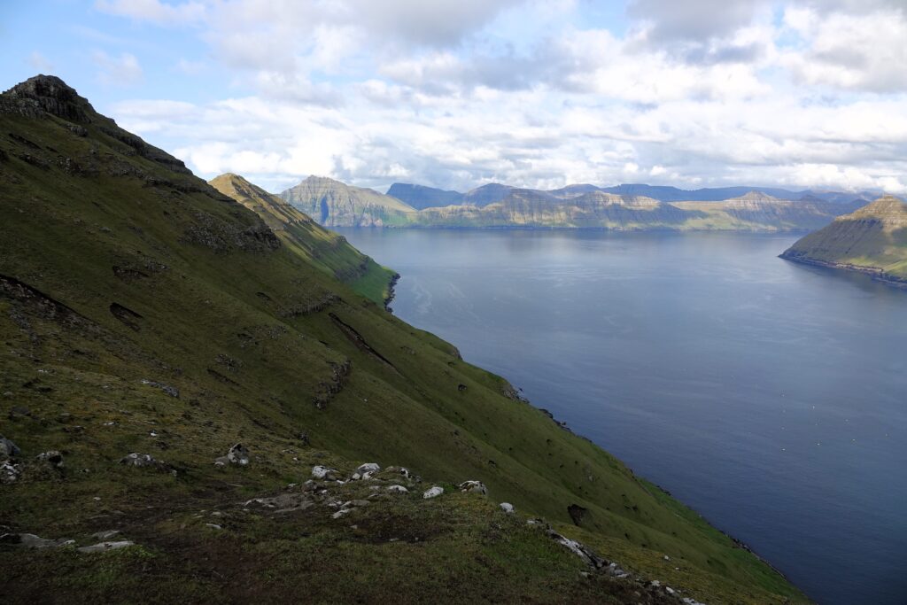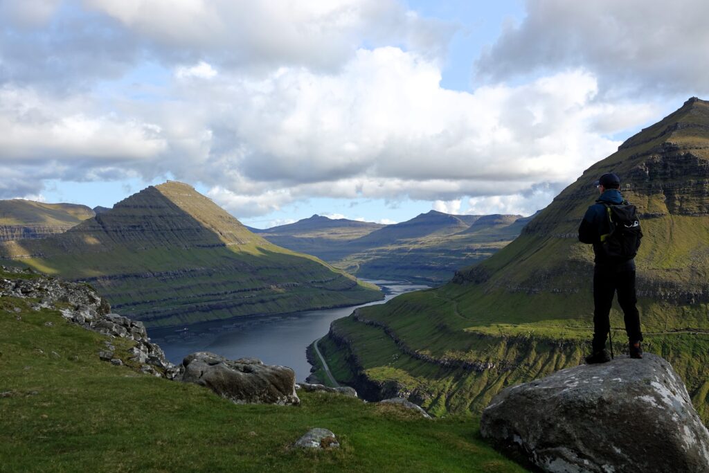 Dreieckswanderung im Norden Eysturoys über den Aussichtspunkt Hvíthamar mit grandiosem Ausblick auf den Fjord bei Funningur.