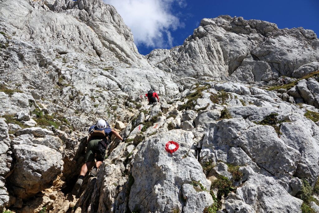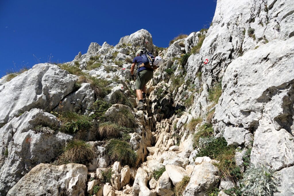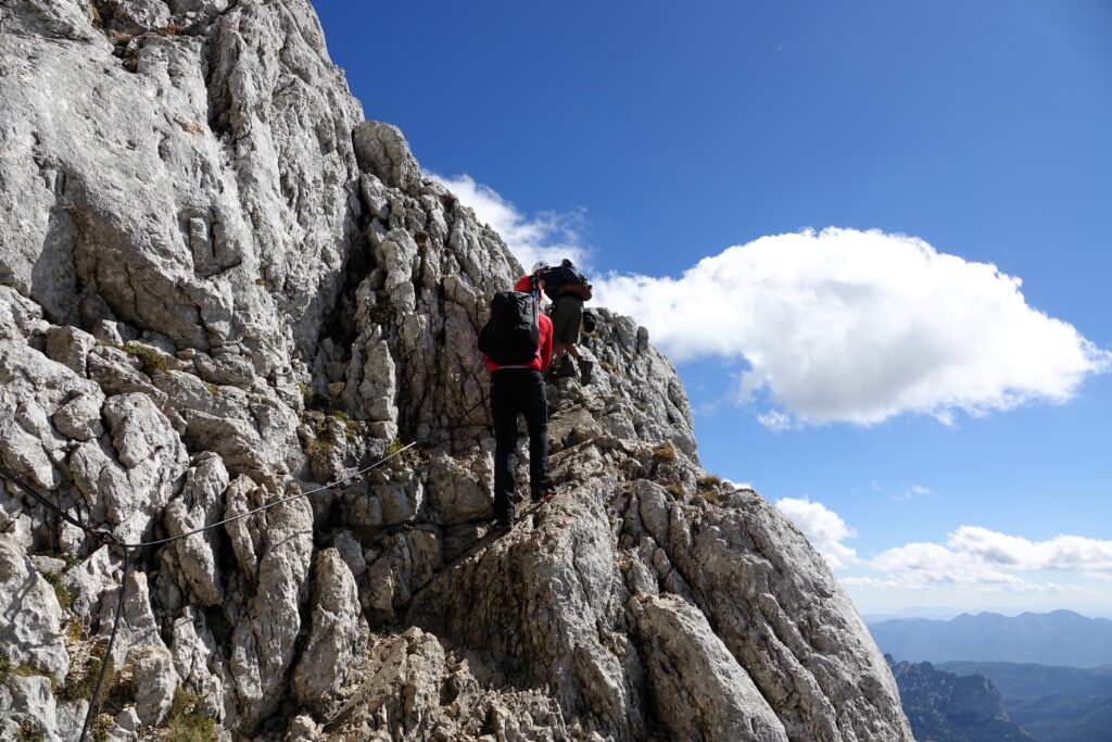 Wanderstöcke (optional), Klettersteigset (optional), Steinschlaghelm, Kletterhandschuhe
